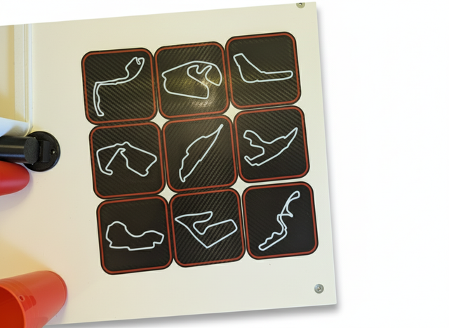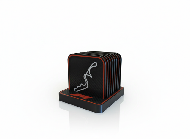 Je vous propose des sous-verres uniques avec un aspect fibre de carbone et le tracé des plus grands circuits (Monaco, Spa, Suzuka, etc.).